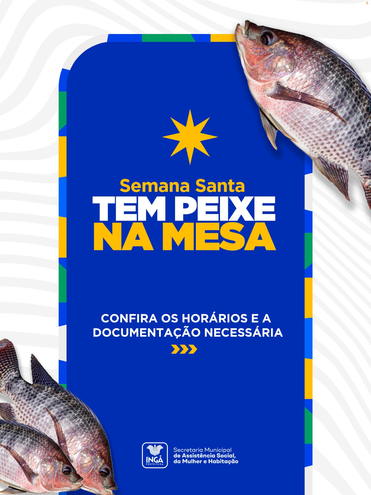 A Secretaria Municipal de Assistência Social informa que o cadastramento para a entrega do peixe será realizado na próxima semana, seguindo cronograma para zona urbana e rural.