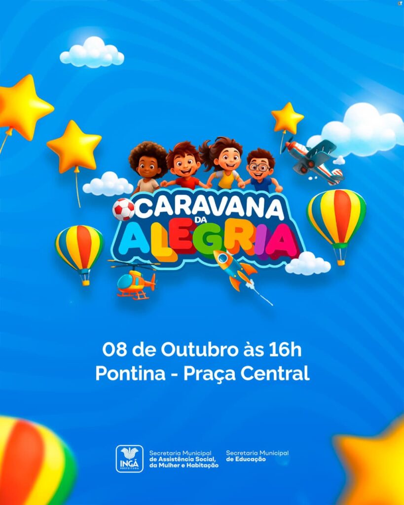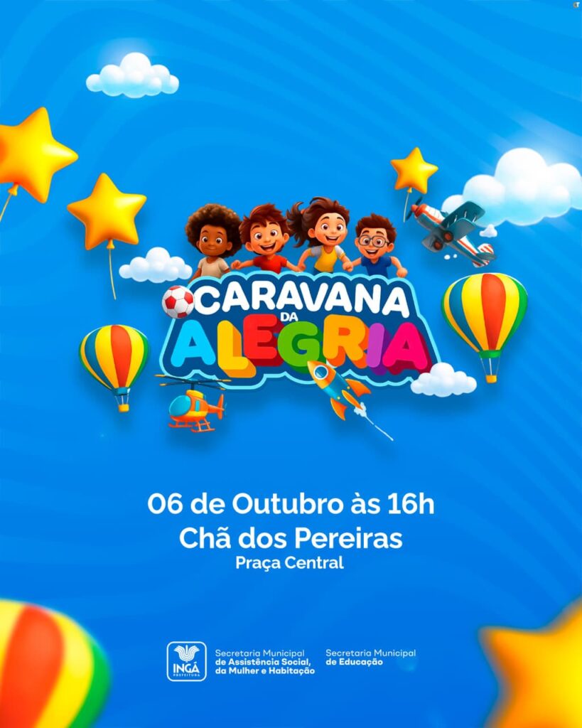 Para comemorar o dia das crianças, as secretarias municipais de Educação e Assistência Social irão realizar a caravana da alegria na cidade e nos distritos de Pontina e Chã dos Pereiras.